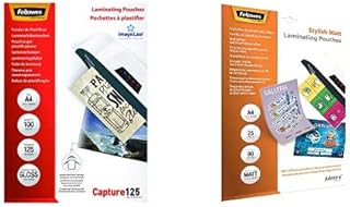 Fellowes ImageLast Laminierfolien 125 Mikron, DIN A4 (100er Pack) + 5602101 Stylish Matt matte, entspiegelte Laminierfolien 80 Mikron, A4, 25 Stück