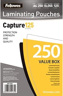 Fellowes Laminierfolien A4, 125 Mikron (2 x 125 mic), glänzende Heißlaminierfolien im Value Pack mit 250 Stück