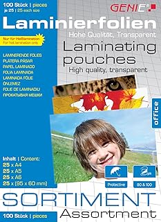 Genie 10265 Laminierfolien (Glasklar; 80 Mikron für Formate bis zu DIN A6; geeignet für alle Heißlaminiergeräte) 100er Pack