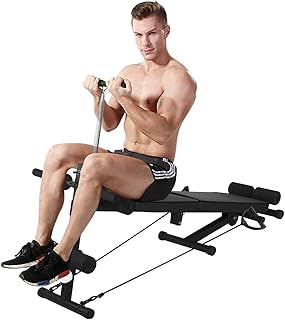 DnKelar Sit-Up-Bank Bauchtrainer mit Widerstandbändern,Hantelbank Trainingsbank,Multifunktion Fitnessbank verstellbar Neigung, Fitnessgeräte für Zuhause