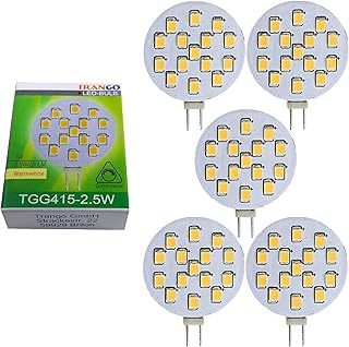 Trango 5er Pack G4 LED Leuchtmittel TGG415-2.5W - 12V AC/DC - 2.5 Watt 250 Lumen mit 3000K Power SMDs warmweiß zum Austausch von G4 GU4 MR16 Halogen Lampensockel Spot