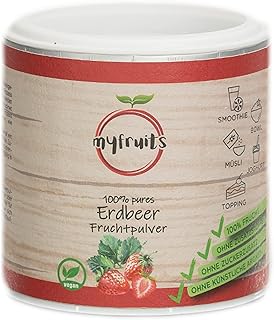 myfruits® Erdbeerpulver, 100 % Erdbeeren ohne Zusätze, gefriergetrocknet. Fruchtpulver für Smoothie, Shakes & Joghurt. Hergestellt in Deutschland (150g)