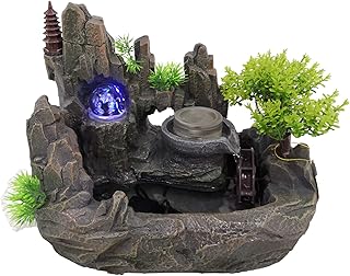 DRULINE Zimmerbrunnen Brunnen aus Polyresin mit LED Beleuchtung,Pumpe Tischbrunnen Steingarten Wasserspiel Wasserfall fur Büro Wohnzimmer, Innen und Außen Springbrunnen Gartenbrunnen Sweden