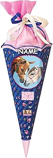 alles-meine.de GmbH BASTELSET Schultüte - Pferdefreunde - Pferde & Schmetterlinge - incl. Name - 85 cm - mit / ohne Kunststoff Spitze - Zuckertüte - incl. Rohling - Bastelsch..