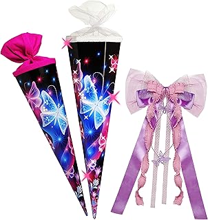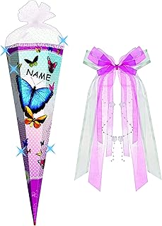 alles-meine.de GmbH passende 3D LED Licht & Leucht - Schleife - für Schultüte - Bunte Schmetterlinge - 22 / 35 / 50 / 70 / 85 cm - incl. Namen - Zuckertüte Roth - ALLE Größen..