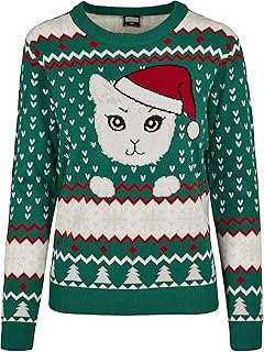 Urban Classics Damen Pullover Ladies Pug Christmas Ugly Sweater, Weihnachts-Sweatshirt für Frauen mit Mops-Motiv, Größen XS - XL