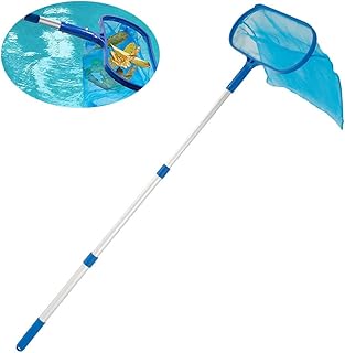 EVAEVA Swimming Pool Skimmer Kescher, Pool Kescher, Poolreinigung Laubkescher Schwimmbad Kescher Pool Kescher mit Teleskopstange für Brunnen Aquarien Whirlpools Spas