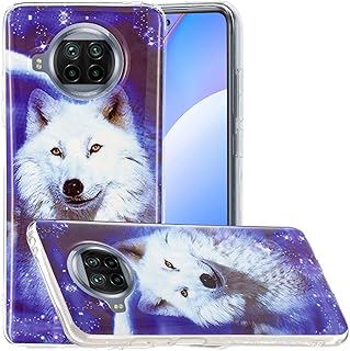 Miagon Leuchtend Luminous Hülle für Xiaomi Mi 10T Lite,Fluoreszierend Licht im Dunkeln Handyhülle Silikon Case Handytasche Stoßfest Schutzhülle,Weiß Wolf