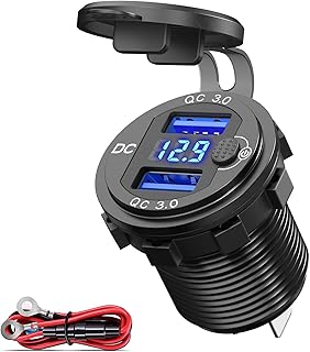 Quick Charge 3.0 Auto USB Steckdose 12V mit Schalter, USB Einbau Buchse 24V Wasserdicht KFZ Ladegerät Zigarettenanzünder Dose mit Rot LED Voltmeter Spannungsanzeige für Motorrad Boot LKW Wohnwagen
